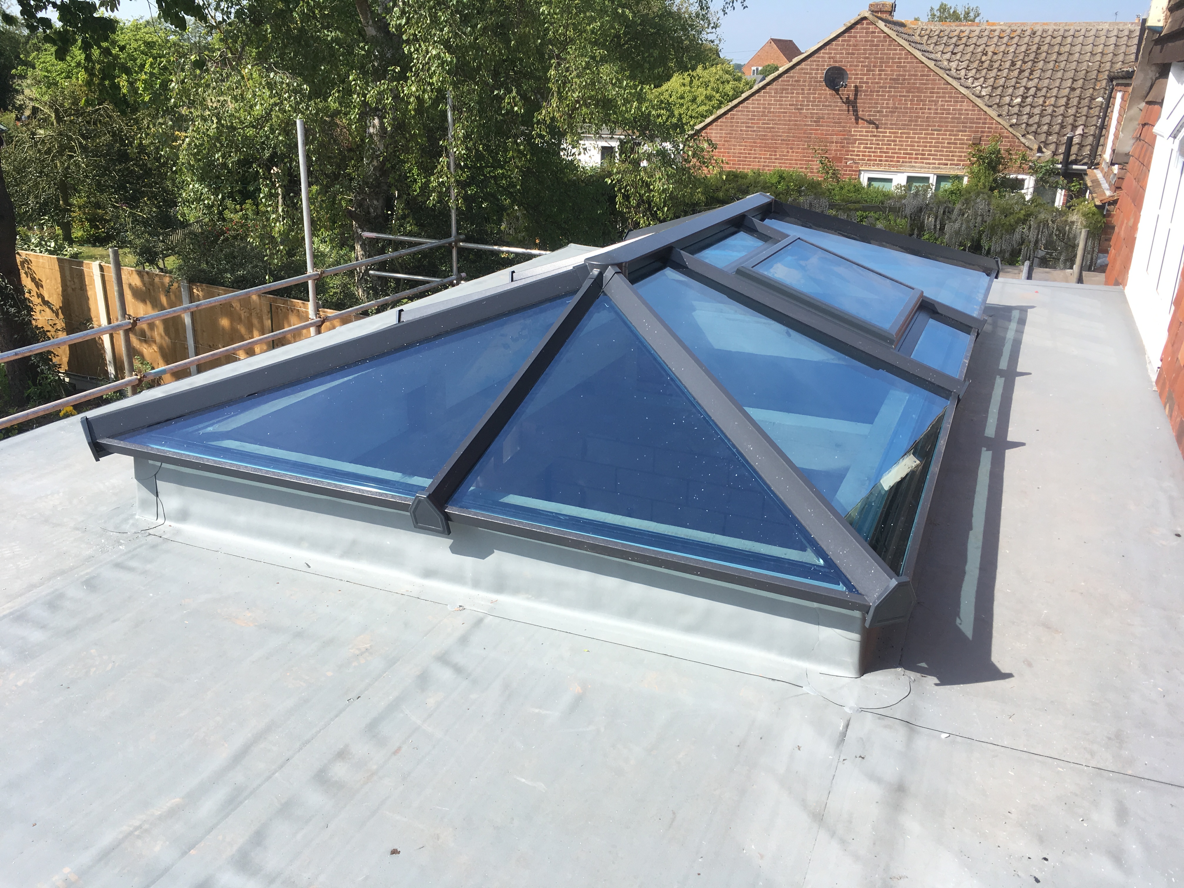 Last Wednesday we made our way down to Westmarsh to finish off the roof on one of our recent projects: Annex/Sun room. We’re very glad to see how well the job is looking. The roofing was fitted by our friends over at Complete Roofing Contractors Thanet, while the lantern window comes from Eaurocell’s Skypod range and we think it looks great! Let us know what you think!