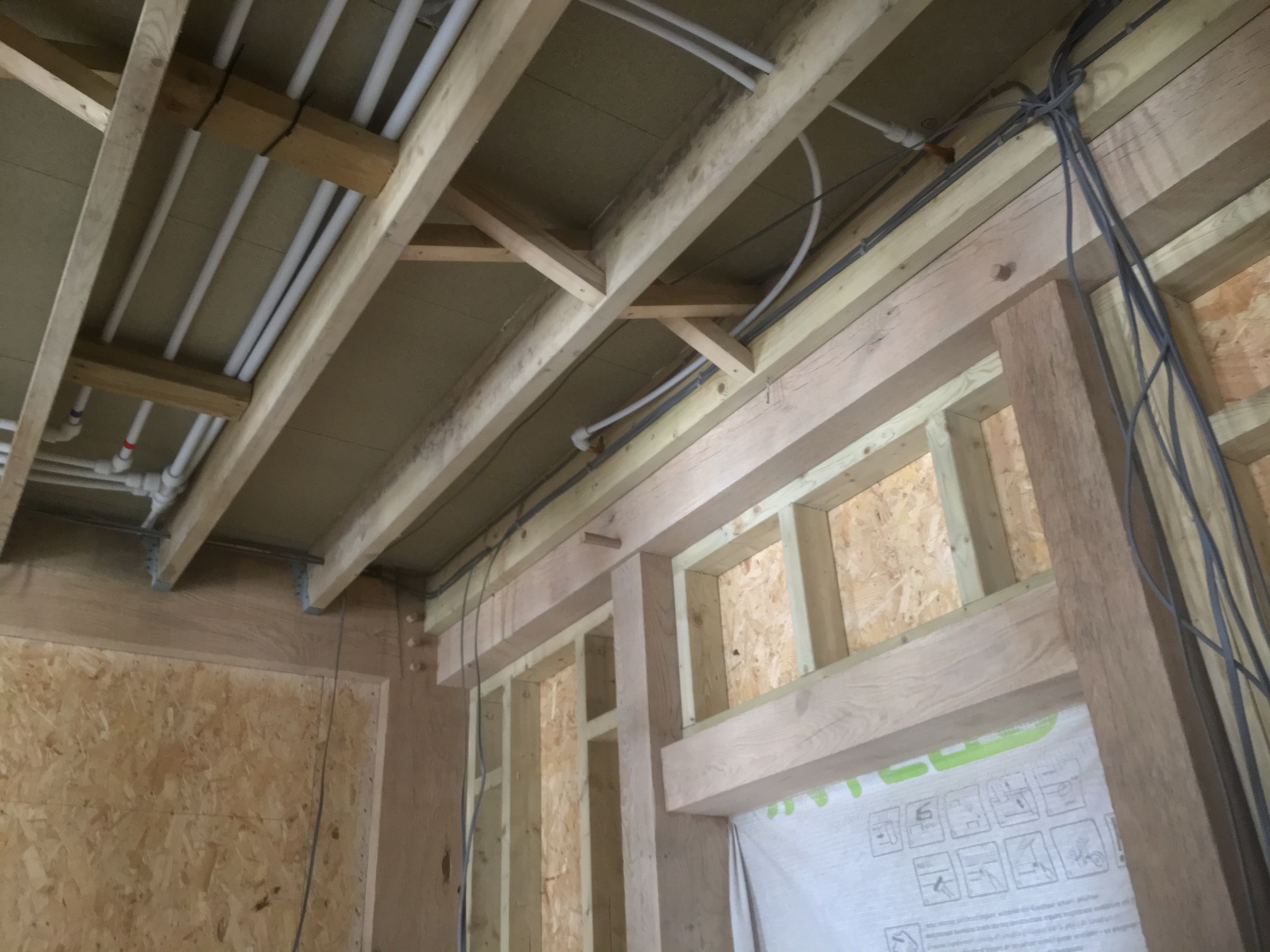 While the team has been working hard in the work shop, progress continues to be made on site in Shepherdswell. This week the instillation of the electrical and plumbing services. This is a monumental task on a project of this scale, installing hundreds of meters of wiring and Pipework and countless sockets so it’s good to see that it’s going so well already!
