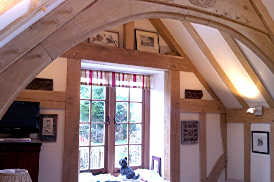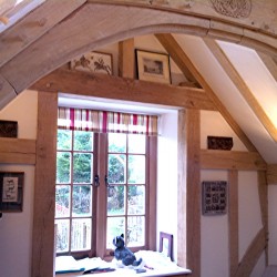 An extension to a 15th century cottage in Somerset this was a small extension that required a careful balancing act in its design to ensure that there was neither too much or too little oak was visible in addition to making the most of stunning views.